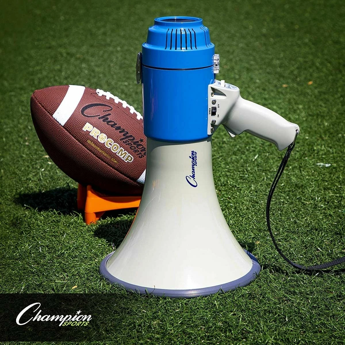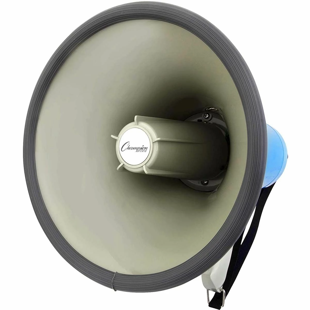 The Champion 1000 yard megaphone is one of the most powerful megaphones around at 12 watts, featuring a built-in siren when you really need to get their attention, an adjustable volume control to adapt to different crowds and a convenient wrist strap making it easy to hold and transport the megaphone.