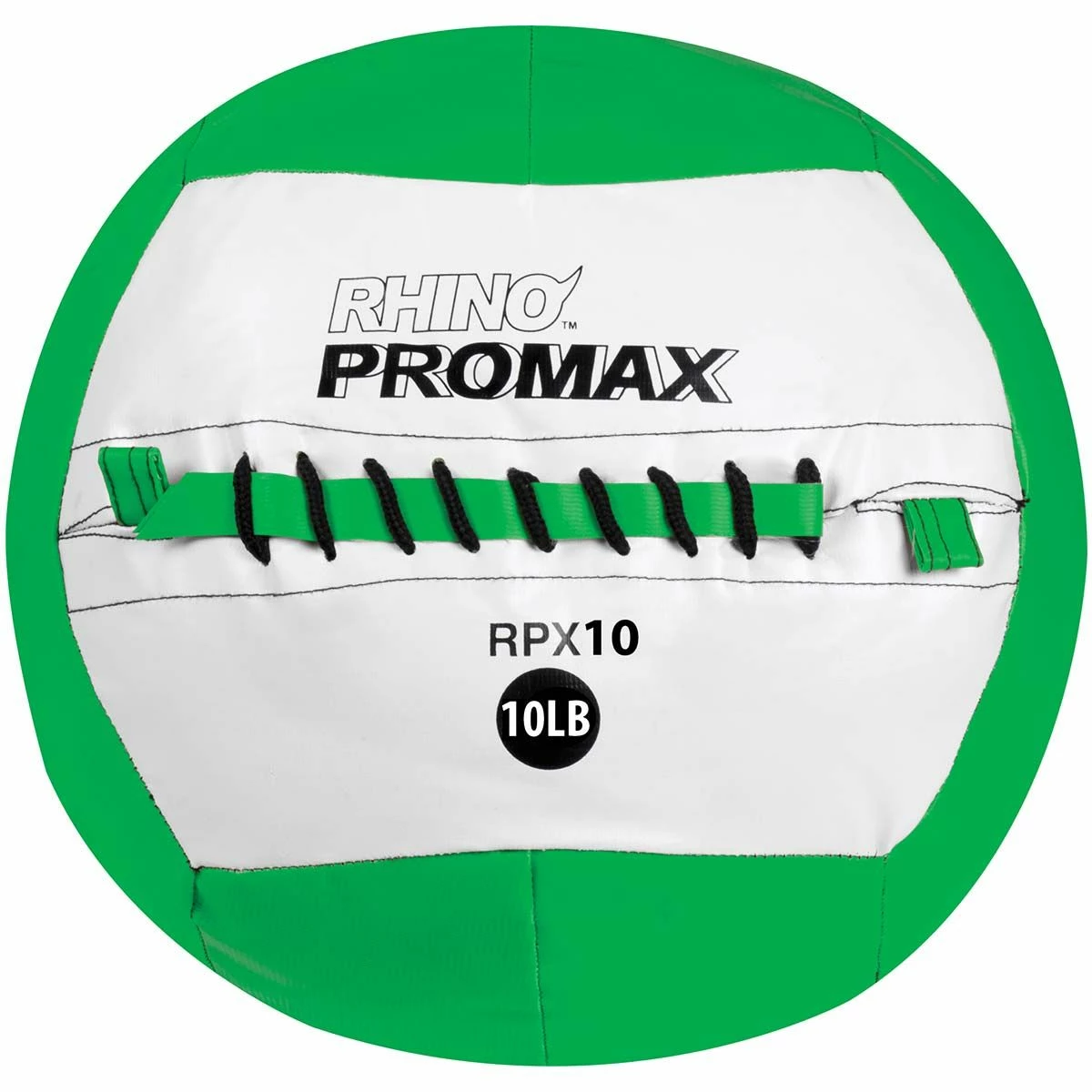 The RPX10 10lb Rhino Promax medicine ball is ideal for throwing, catching, and slamming. Its soft shell construction and rugged synthetic leather cover maintains it shape and weight balance even with high impact action. You can increase and decrease ball weight and resistance without having to change positioning because of a consistent ball diameter. This gives a quick and smooth transition of exercise movements at all intensities.