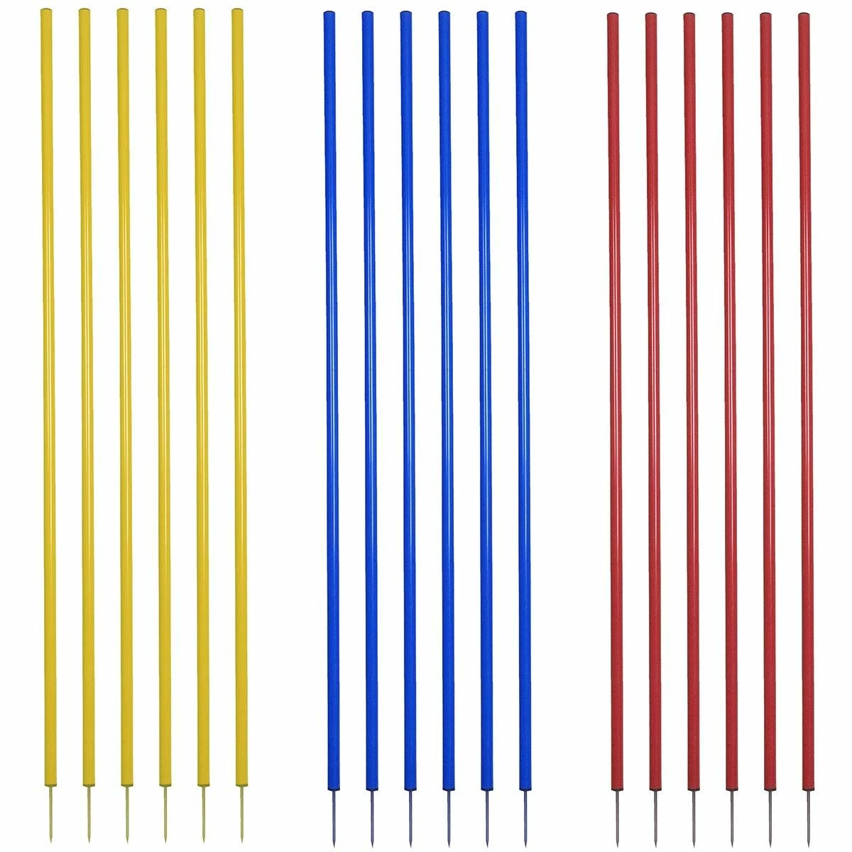 The Champion CS6 coaching sticks come in a set of 6 in your choice of three colors. The plastic uprights are constructed with a round steel base with steel ground pegs to securely hold into the ground.
