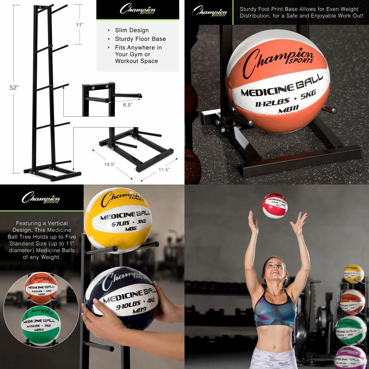- Holds up to 5 medicine balls