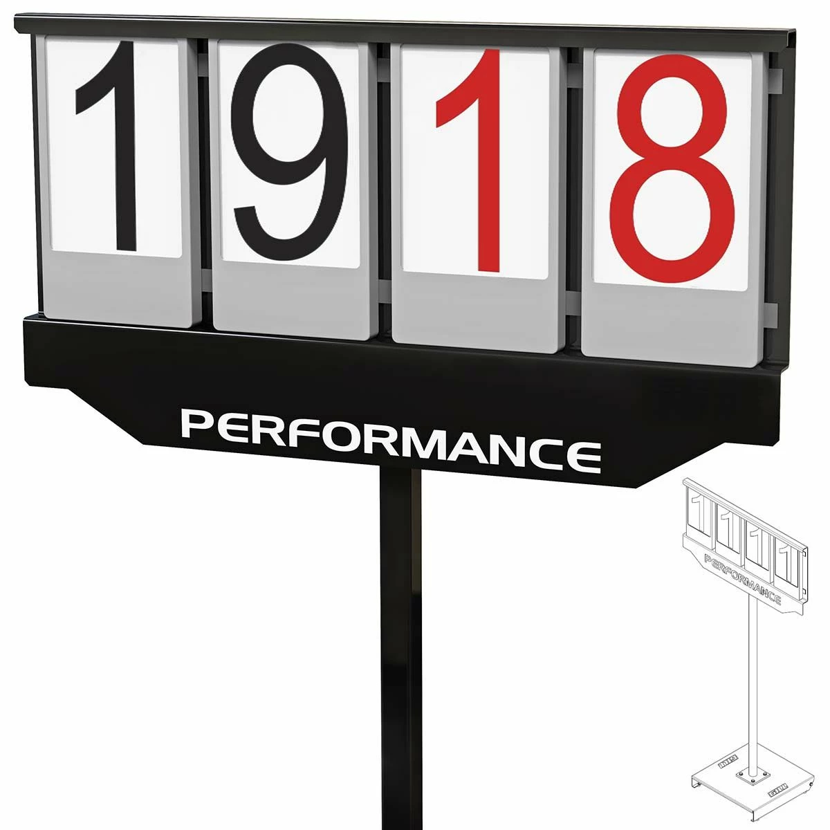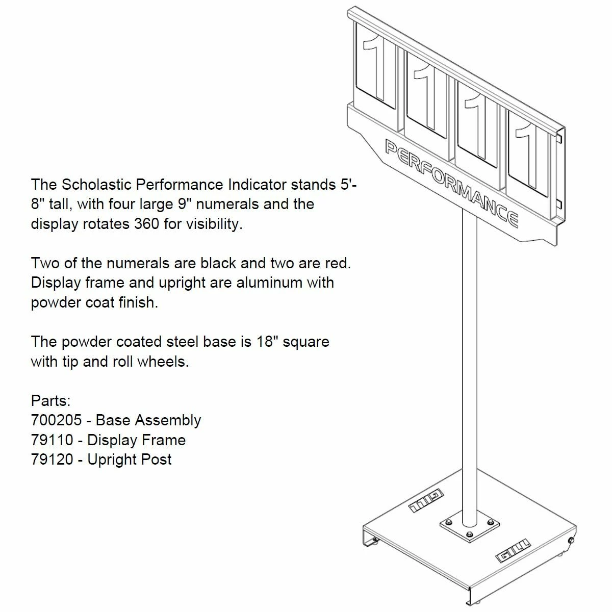 Need an indicator with more than two digits? The Gill four digit scholastic performance indicator is the perfect choice. This unit stands five feet, eight inches tall and features four nine inch numerals, two black and two red, that are perfect for high visibility. The aluminum frame conveniently rotates 360 degrees, and is attached to an 18 inch steel base with tip and roll wheels for easy transport. The aluminum frame, aluminum upright and steel base are fortified with a corrosion resistant black powder coated finish.Â