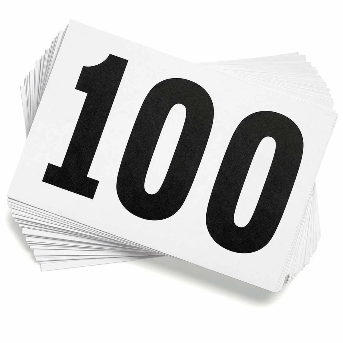 Competitor 001-100 numbers are large and easy to read, so you will never have to worry about confusion at the finish line ever again! Numbers are made from “Tuff Tear” paper tag stock and are sold in sets of 100.