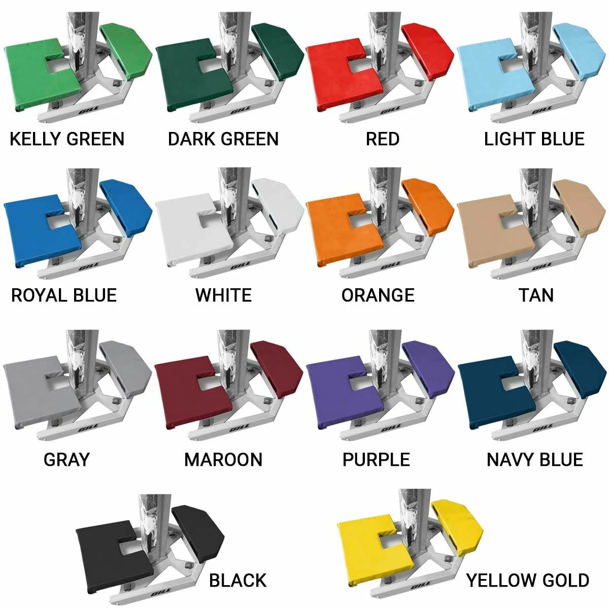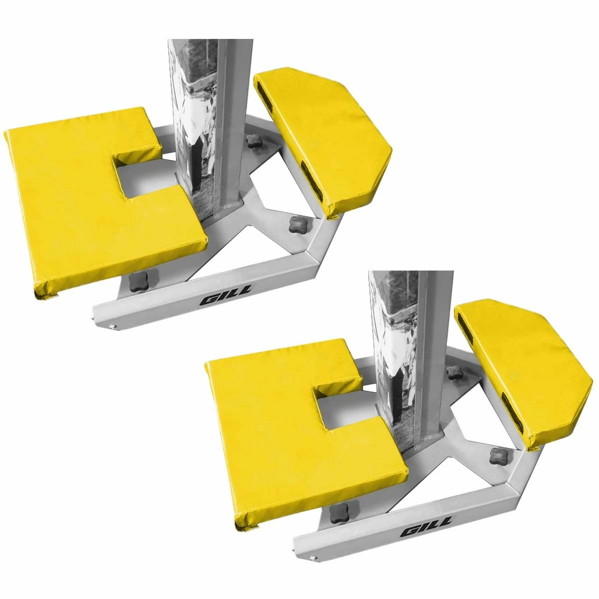 This pair of high jump standard base pads are specifically designed to fit the Gill AGX M4 standards (sold separately). The padding comes in a set of two pads per upright/base (4 pads total). The pads secure around the bottom of the upright via hook and loop fasteners. Choose from 14 different pad colors to match the color of your school or team. This set of base padding is approved for high jump use in NFHS, NCAA, IAAF, USATF and AAU.